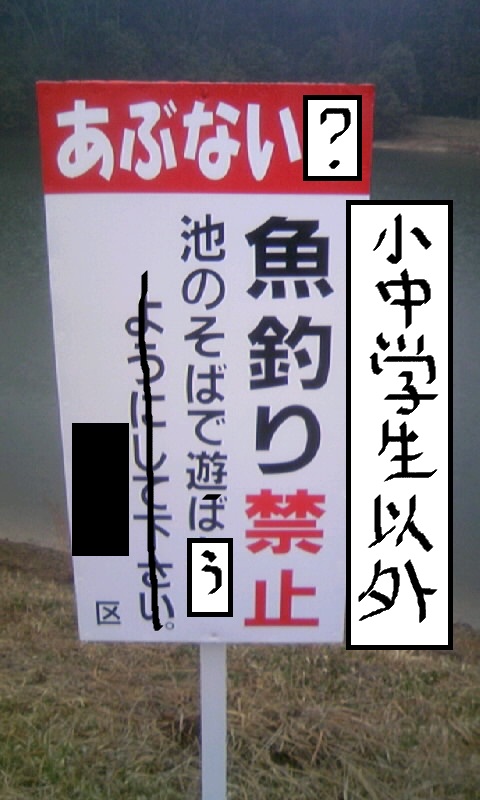 この看板を利用してギラついた大人は釣り禁止ね(爆)